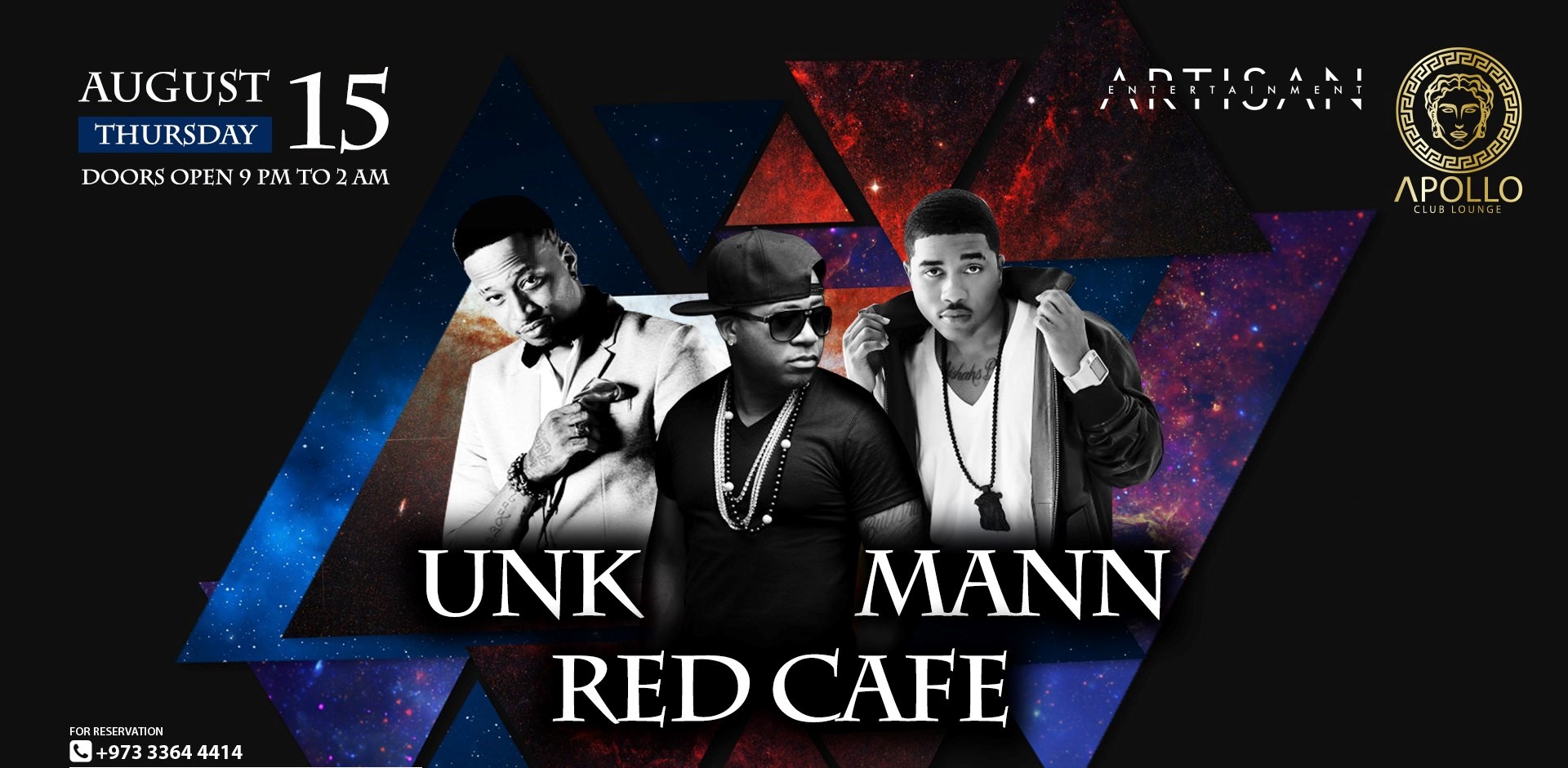 Apollo club proudly presents the HIP HOP superstar artists MANN – RED CAFE – UNK performing live at apollo.